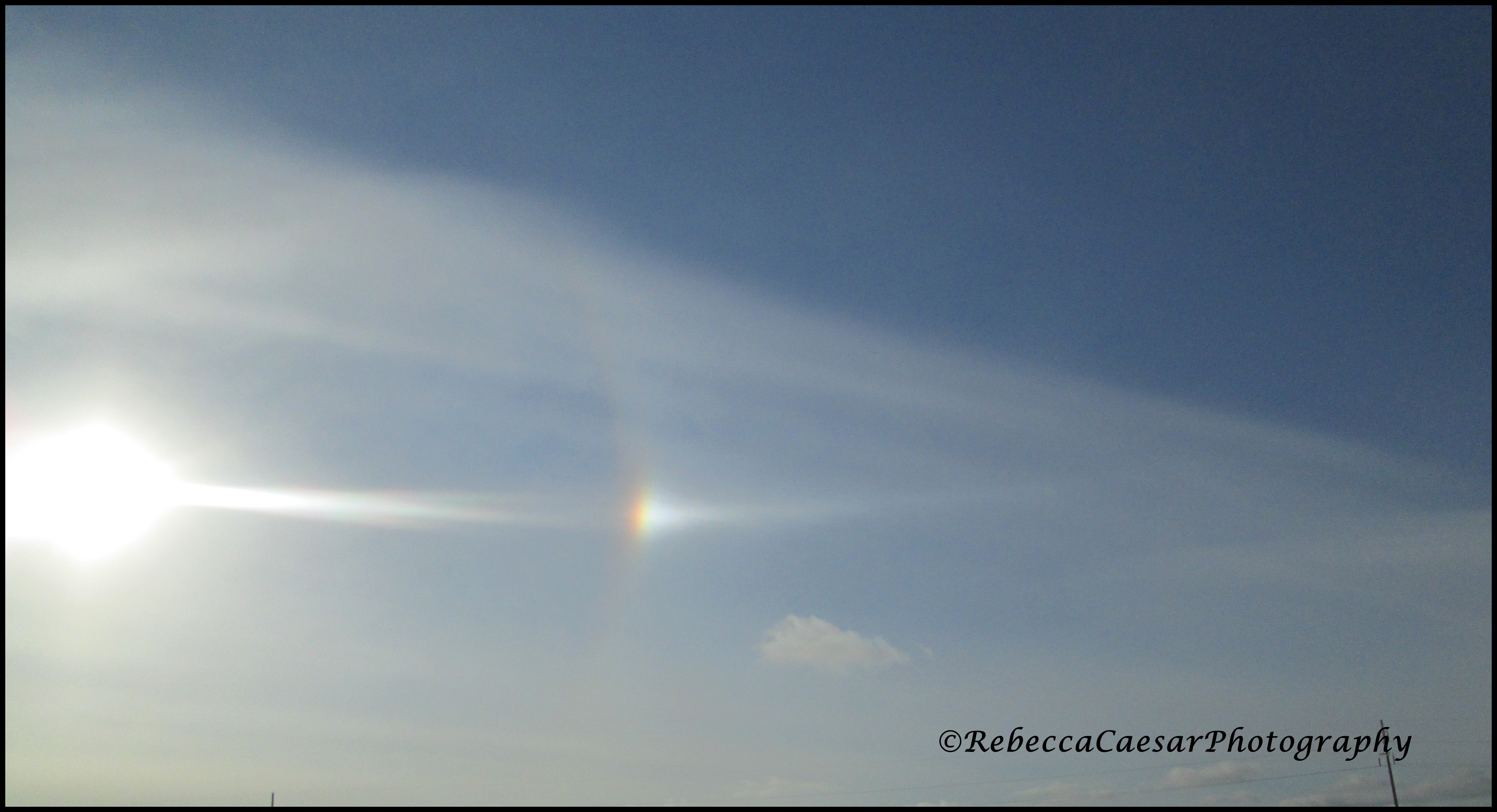 The sun was shining brightly but as I drove around.  I noticed a ring around the sun in the form of a rainbow.  I was instantly intrigued. Of course, I did not have my good camera with me.  But I had my little pocket camera that goes everywhere with me.  I pulled off the side of the road and snapped a few photos.