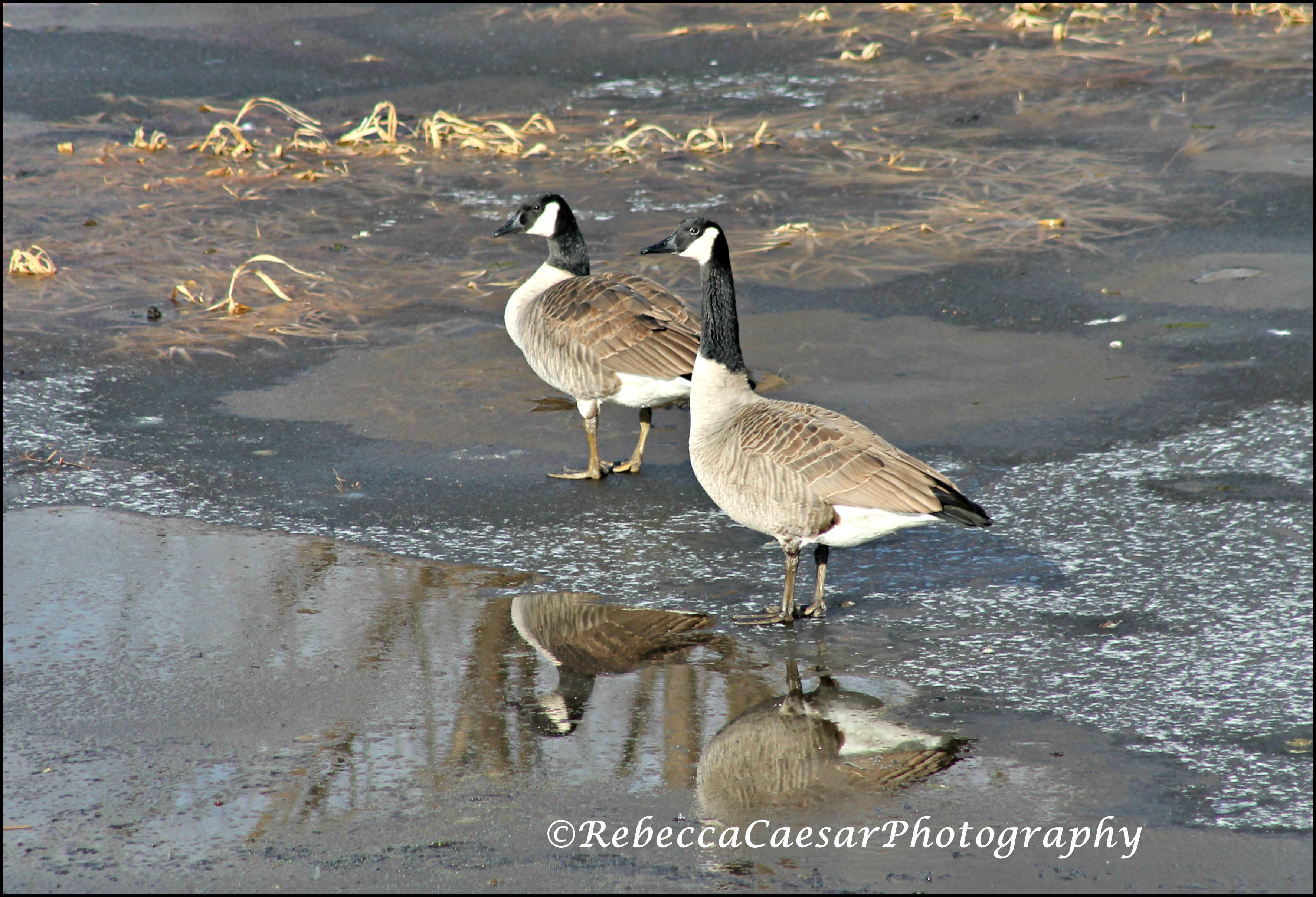 I love how the geese just walk across the ice to find an open water space.