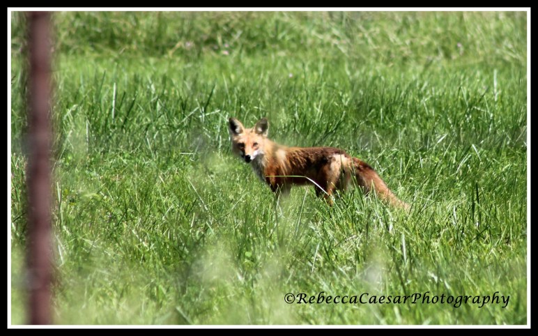 A few years ago, I photographed foxes in their natural habitat. But I have never viewed any in my immediate surroundings. I was pretty excited to see her (or him, I don’t know the difference upon first glance).  I quickly grabbed my camera and was able to take just three photos before she scurried back into the wooded area.