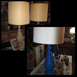 I took my old lamps that I picked up at a church sale and updated them with fresh paint.I am always picking up lawn ornaments and redoing them.