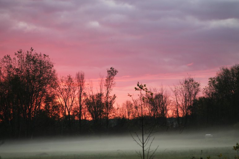 I particularly loved this sunrise. The thick heavy fog seemed to lower as the sun began to peek over the Michigan landscape. At every stage of the sunrise, the natural world began to wake. Chirping birds sang, insects buzzed, turkeys strolled across the field, and the deer slowly pranced by me, a perfect start to the day.