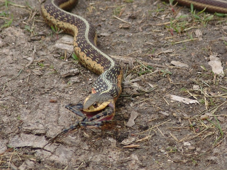 I am generally not afraid of snakes. I actually enjoy photographing snakes and other types of wildlife. In fact, numerous Garter snakes hang out around my chicken coop. But, I will tell you, when I opened the coop door the other day, a snake fell down from the rafters and hit my hand. I do believe the entire county heard me scream.
