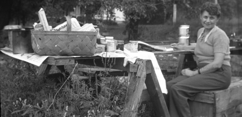 For those who follow this blog, you already know I love old photos. But there are some images; I just crave to know more about the person and the circumstances surrounding the photo. This image of a woman sitting at a makeshift picnic table is one of them.
