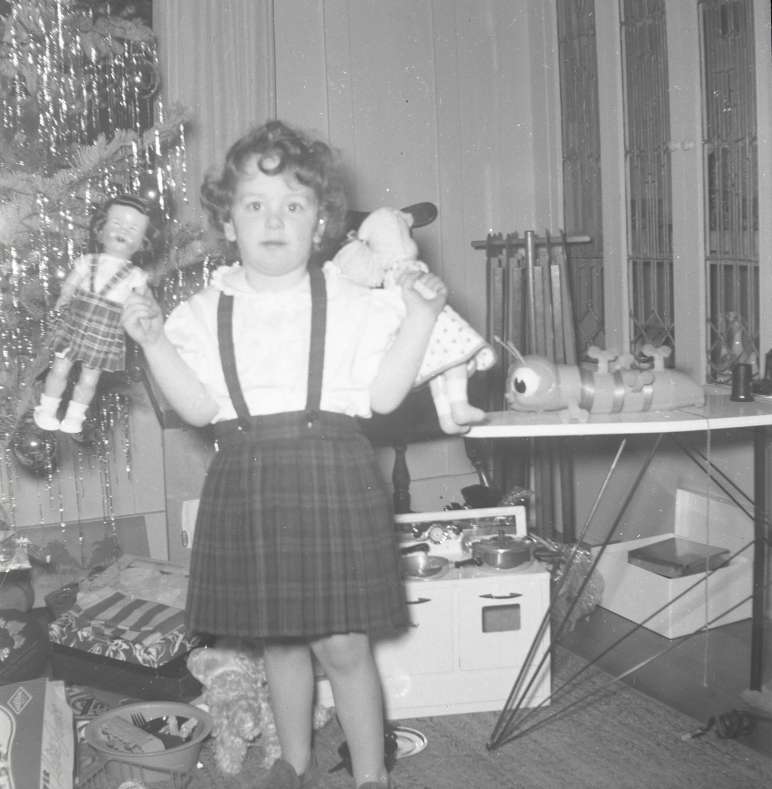 But, I believe, there is something truly magical about showing off two brand-new baby dolls on Christmas morning! I would place this photo in the early 1950s range. I just love the little girl and her new toys.