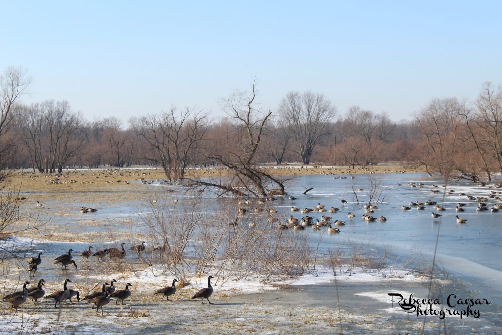 The Canadian geese are very vocal down on the river flats. The snow is slowly melting away.