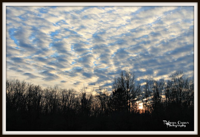 Ok, I know clouds cannot be frozen. I do remember some parts of my science classes from grade school. Tonight, when I had to get outside and away from the computer, the air was so cold. The clouds just looked as if they were frozen in the sky. I loved watching them as they slowly changed.