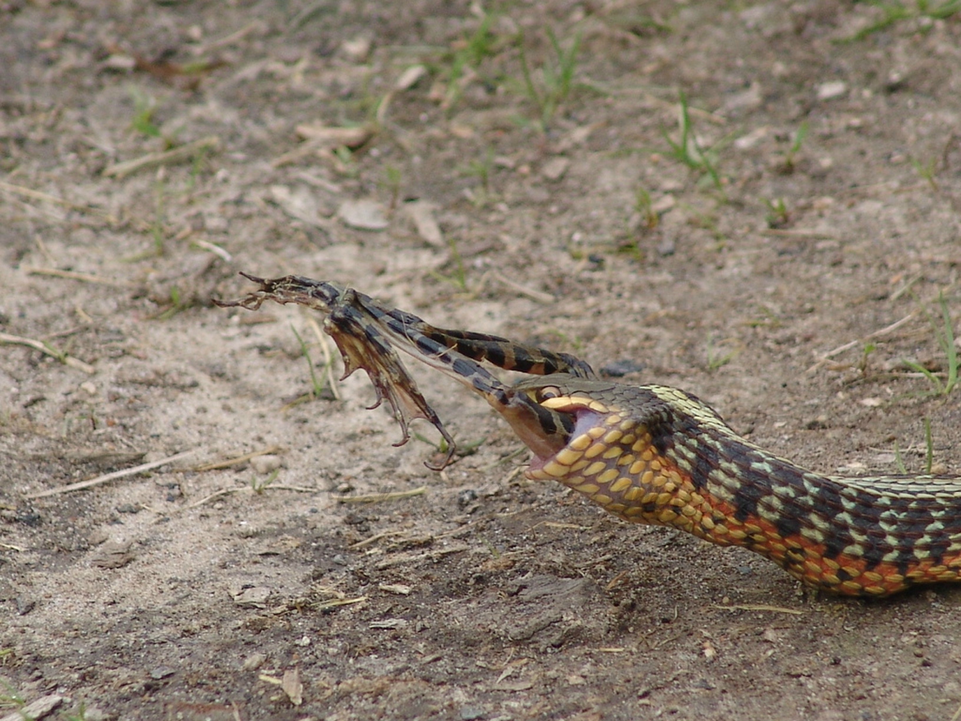 I am generally not afraid of snakes. I actually enjoy photographing snakes and other types of wildlife. In fact, numerous Garter snakes hang out around my chicken coop. But, I will tell you, when I opened the coop door the other day, a snake fell down from the rafters and hit my hand. I do believe the entire county heard me scream.